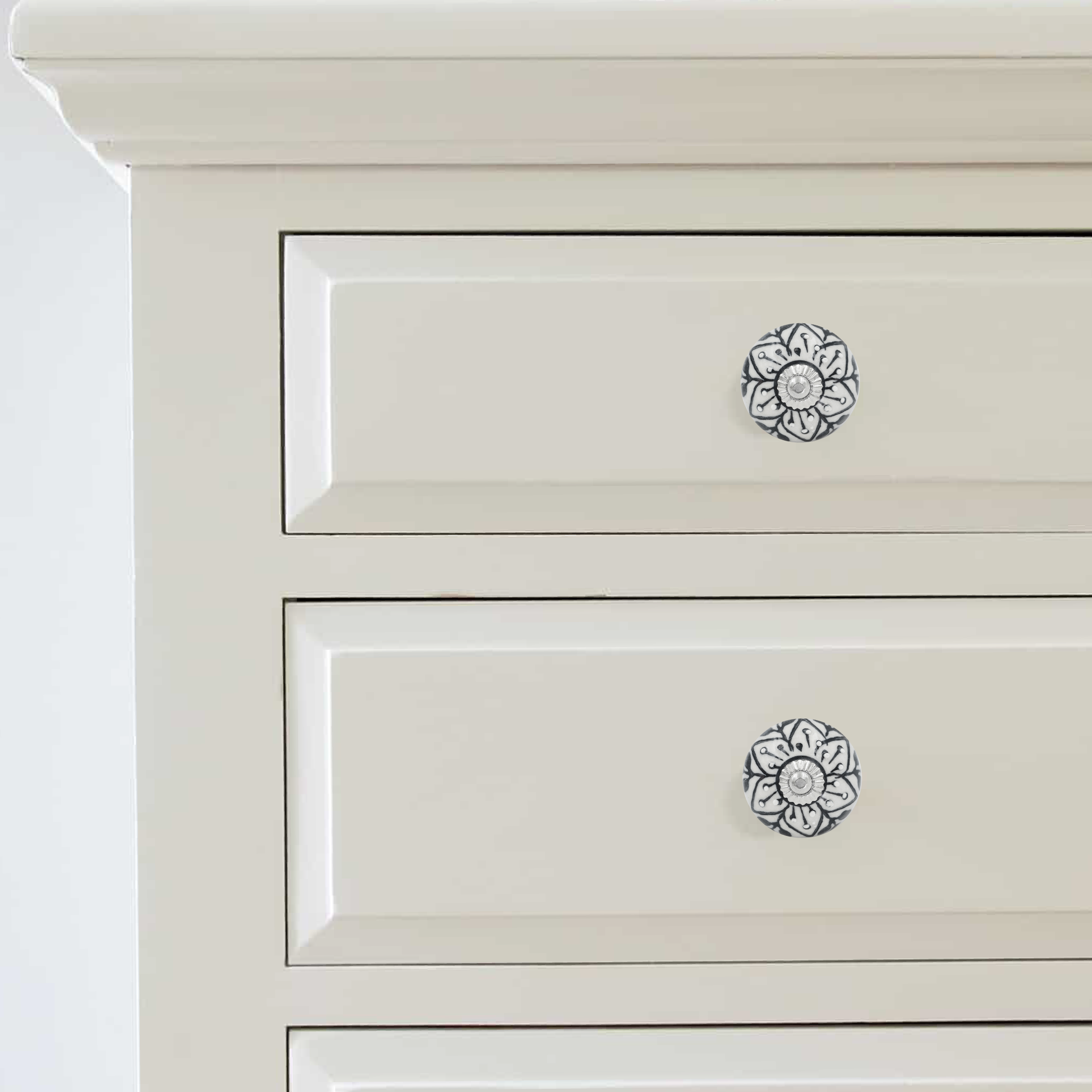 Introducing our exquisite ceramic knob, meticulously handcrafted by skilled artisans. Each knob begins as raw clay, carefully shaped and molded by expert hands. After drying, it undergoes intricate painting or glazing, adding intricate details and vibrant colors. Finally, fired in traditional kilns, these knobs emerge as stunning accents, ready to adorn your furniture with elegance and charm.